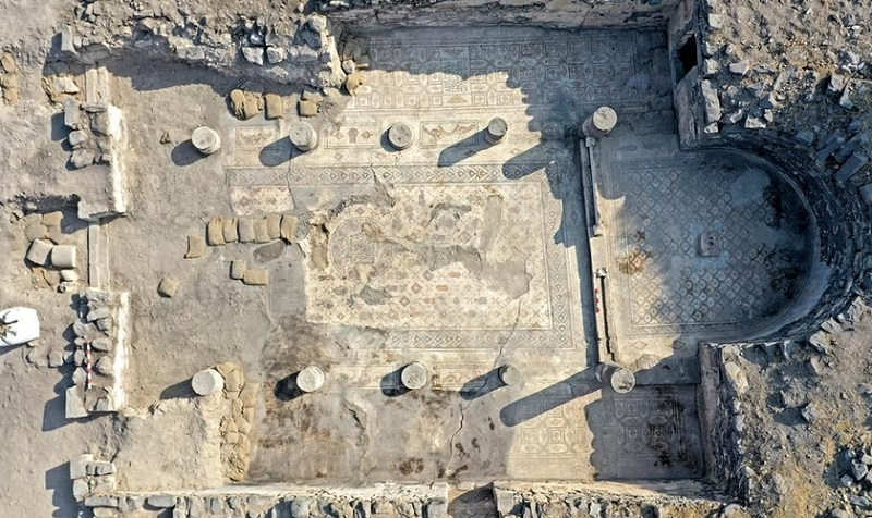 Investigadores de la Universidad de Haifa expusieron el mosaico durante las excavaciones en la llamada “Iglesia quemada” en el sitio de la excavación Hippos-Sussita.
