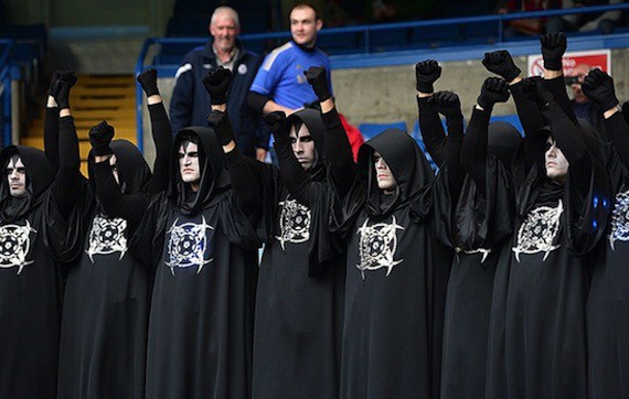 Este ritual satánico público tiene destinado “invocar a Bafomete”, uno de los muchos nombres del diablo, que está representado por una figura con un cuerpo humano, pero con cabeza de cabra.
