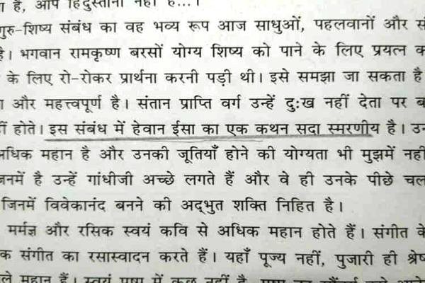 En el capítulo 16 del libro titulado Bharatiya Sanskriti Mein Guru-Shishya Sambandh ("Relación entre un Gurú y sus discípulos en la cultura india") en la página 70, la línea se refiere a Jesucristo como "Iss sambandh mein haivan Isa ka ek Kathan sadaa smaraniya hain". Que traducido, significa, "En el contexto dado, las palabras del demonio Jesús siempre serán recordadas”.
