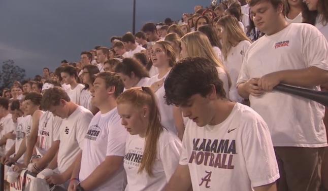 ALABAMA, EE.UU.- Los jugadores y los aficionados se unieron sus voces en oración al Señor durante un partido de fútbol el pasado viernes (22) en Alabama, en los Estados Unidos, después de los ateos se quejaron de que un estudiante oró en un partido reciente.